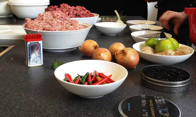 Der Koch und Wagyu-Rinderzüchter Lucki Maurer aus dem Bayerischen Wald leitet das mehrstündige Event. Der inhaltliche Schwerpunkt war also klar, es geht um Fleisch und es geht um die Verarbeitung des ganzen Tieres.