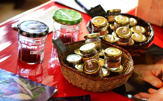 Wie wir im Gespräch erfuhren haben Christina & Jean Frédéric Waldmeyer in Feuchtwangen eine kleine Safranproduktion gestartet und beginnen nun allmählich diese kostbare Gewürz zu vermarkten. Der sympathische Herr Waldmeyer erklärte (und das wußte ich noch nicht), dass Safran etwas reifen muss und nach 2 bis 3 Jahren nach der Ernte am besten schmeckt. Wir konnten uns bei einer Geruchsprobe davon überzeugen. Ganz toll, dass man in der Region nun so ein außergewöhnliches Produkt bekommt!
