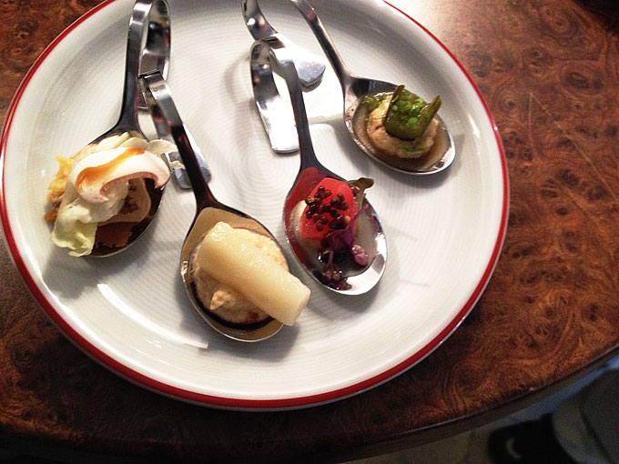 Auf den Löffelchen befanden sich im Detail folgende Kombinationen (von rechts nach links):