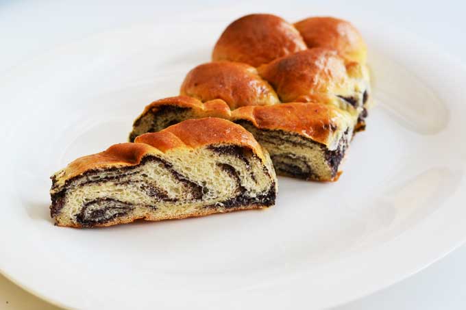 Die Mohnmasse läßt sich übrigens problemlos schon vorher zubereiten. Sie hält im Kühlschrank einige Tage.