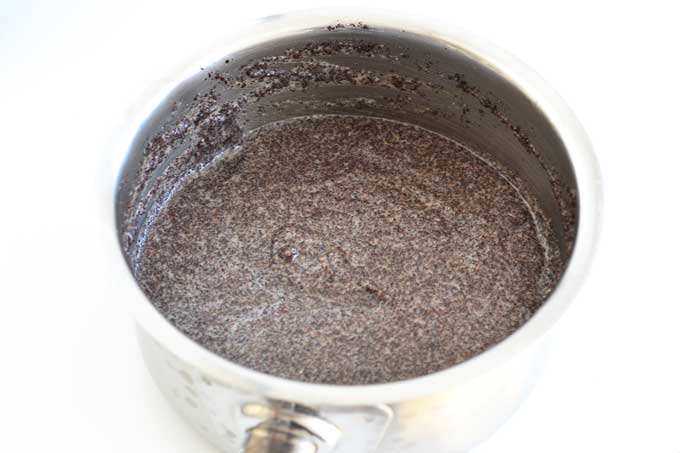 - Mohn, Milch, Zucker, Honig, Butter und Gries in einer Stielkasserole vermischen