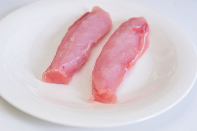 - Kaninchenfilet einmal durchschneiden und anlegen.