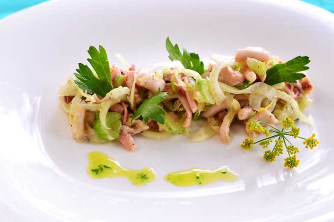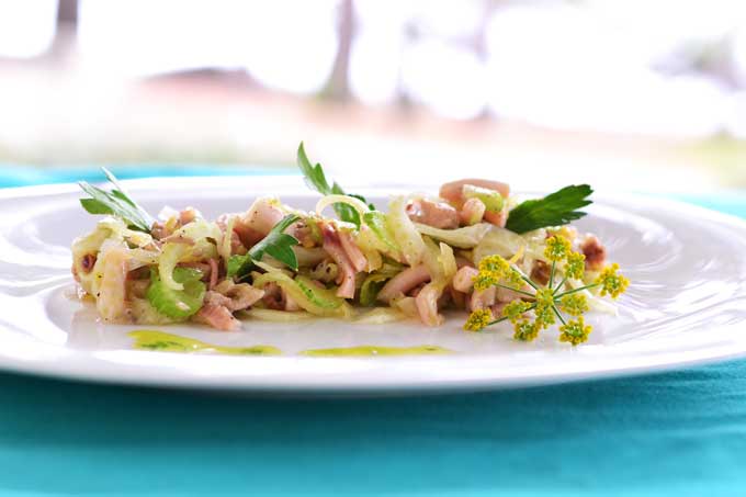 Pulposalat mit Stangensellerie, Fenchel, Salzzitronen