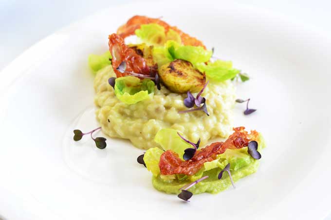 - Als Püree im Risotto und als separates Element (cremige Textur mit dezentem Kohlaroma)
