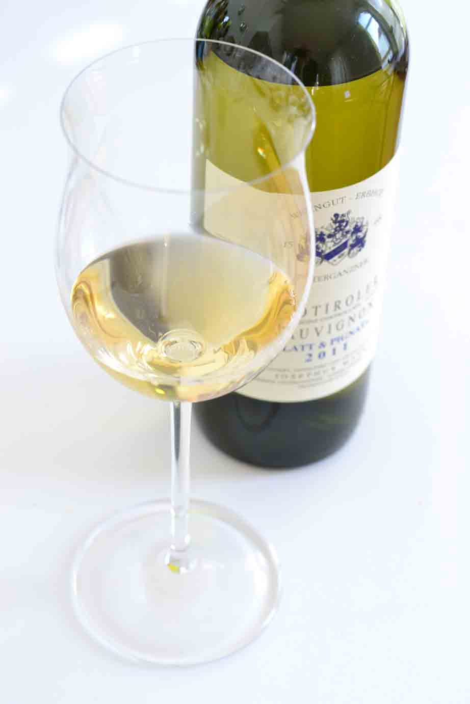 Ich war mir zuerst unschlüssig, welches Getränk am besten passen würde. Zuerst dachte ich an ein spritziges Weizenbier, verwarf aber die Idee zugunsten von Wein. Nun wäre eine klassische Wahl zu Asienaromen vielleicht eine Scheurebe oder ein Gewürztraminer. Wegen der überwiegenden grünen Aromen (Minze, Choi Sam, Dill) kam mir ein Sauvignon in den Sinn. Aber ist der nicht zu „grasig“? Ja deshalb braucht man vielleicht einen gereiften und hochklassigen Sauvignon. Der Keller gab einen Sauvignon Blanc aus Südtirol her, von Josephus Mayr, Jahrgang 2011 (zum Weingut). „Könnte funktionieren“, dachte ich mir…