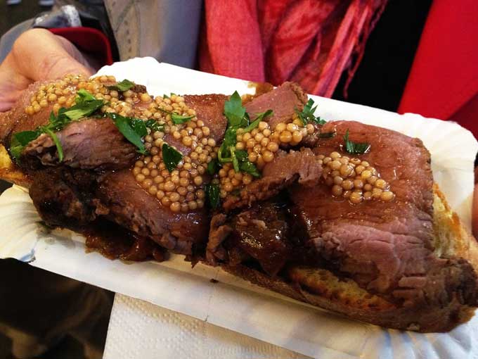 Saftig, aromatisch und fleischig – Umami at its best! Das Team vom Comptoir du Cidre ist inzwischen bundesweit auf Streetfood-Festivals unterwegs. Wer sie mal antrifft, darf sich die Gelegenheit nicht entgehen lassen mal zu probieren. Portion auf Brot für 6,- €.